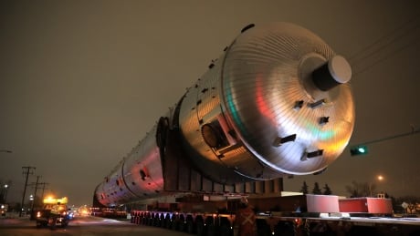 The Alberta government calls the 820-tonne, 96-metre-long piece of petrochemical development equipment the “heaviest load ever to travel on Alberta’s highway network.”