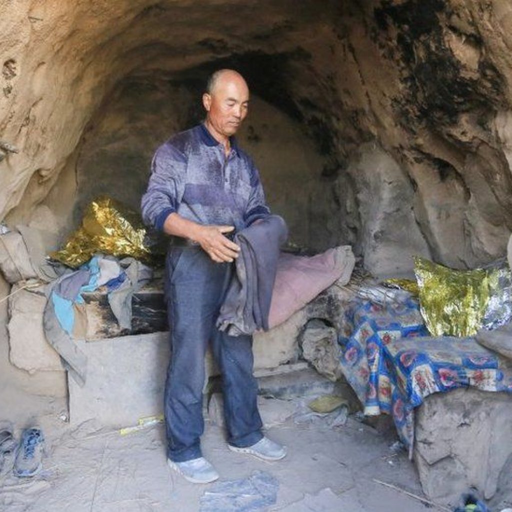 Mr Zhu took refuge in a cave where he stored emergency food and clothes, but while inside he
